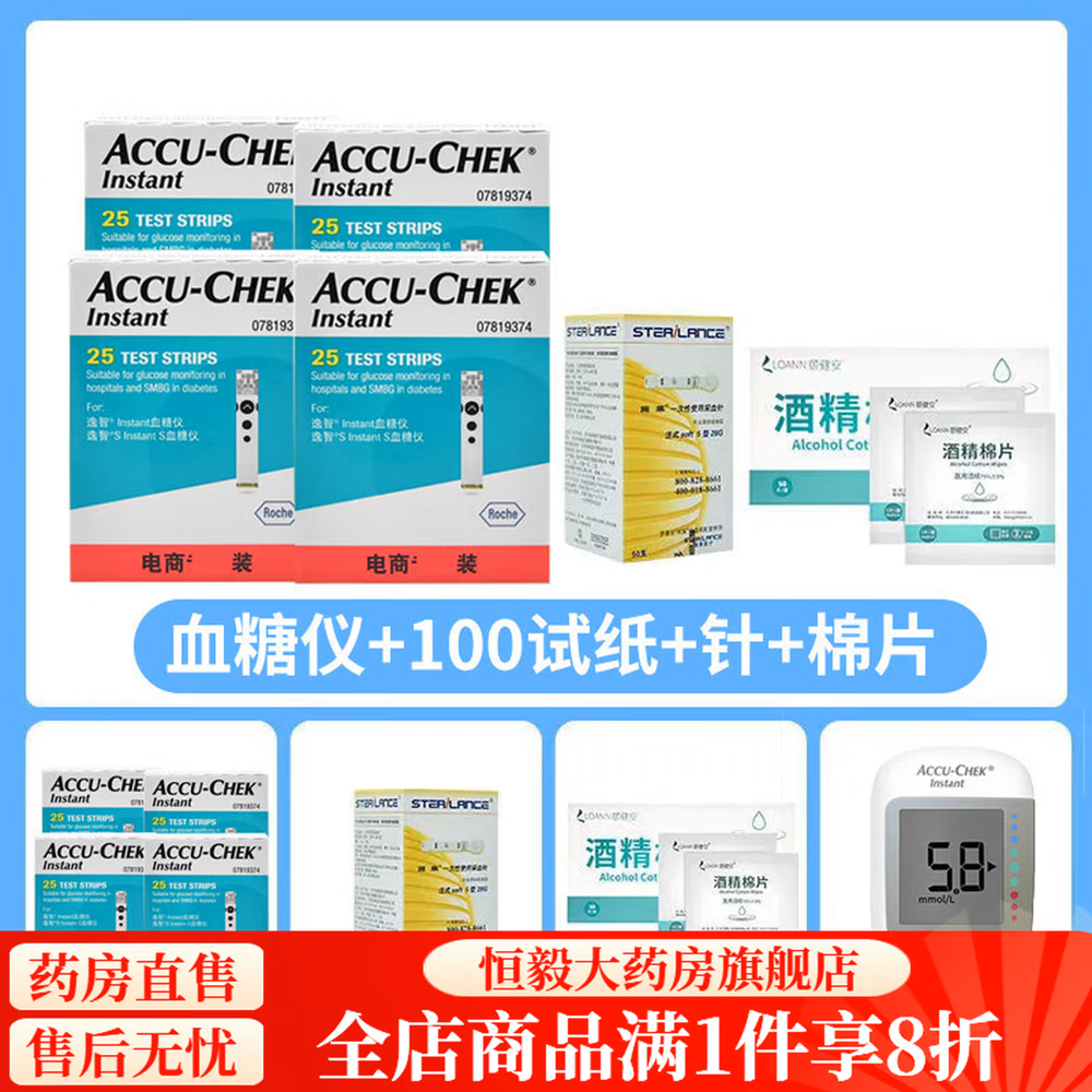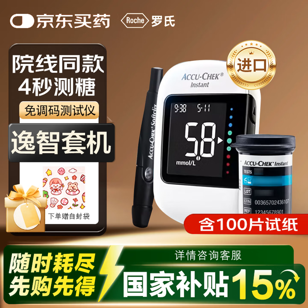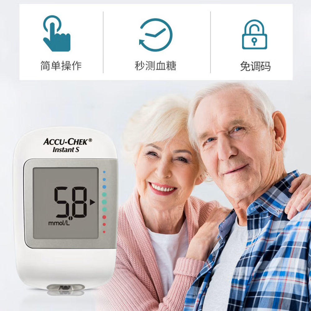 羅氏 羅氏ROCHE逸智Instant S型血糖儀家用免調碼血糖檢測儀指尖測糖儀 【26年10月】無儀器-100片試紙