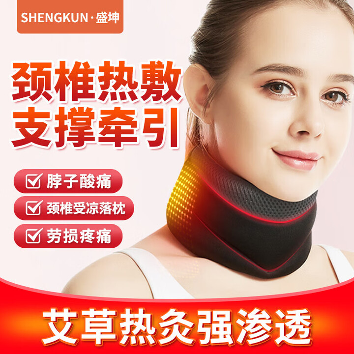盛坤 盛坤【艾草熱敷】盛坤電加熱頸托護(hù)頸帶頸椎保暖脖套圍脖子防低頭支撐 支撐牽引+男女通用+三種墊片