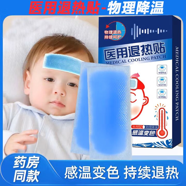 健古通 健古通醫用退熱貼成人兒童可用降溫貼退燒發燒物理降溫感溫變色退熱凝膠 成人兒童通用加強款醫用退熱貼
