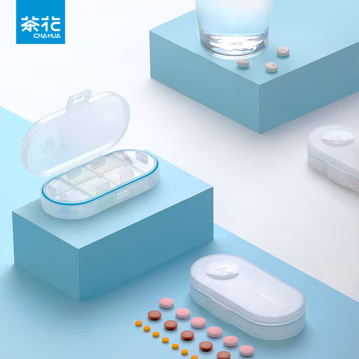 茶花便攜小號抗菌藥盒迷你收納盒一周旅行藥物收 納分裝盒密封防潮盒子