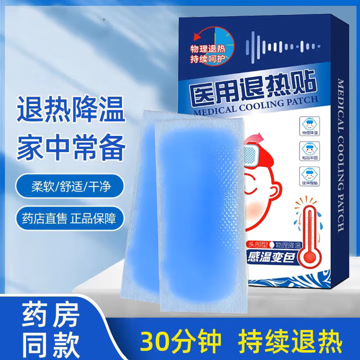 健古通醫用退熱貼成人兒童可用降溫貼退燒發燒物理降溫感溫變色退熱凝膠 成人兒童通用加強款醫用退熱貼