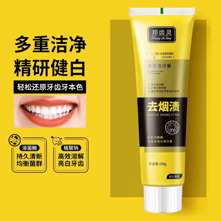 健古通抽煙口臭男士專用牙膏抽煙牙齒黑色茶漬咖啡漬閃亮白牙膏牙粉去黃 去煙漬牙膏