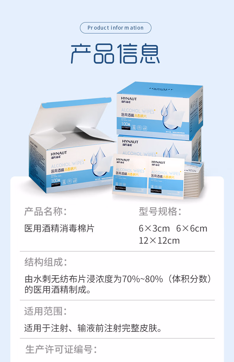 海氏海諾 醫用酒精棉片消毒棉片大號75%酒精消毒濕巾單片獨立包裝