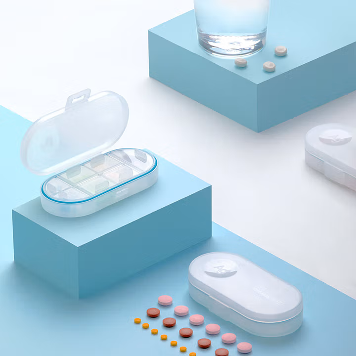 茶花便攜小號抗菌藥盒迷你收納盒一周旅行藥物收納分裝盒密封防潮盒子