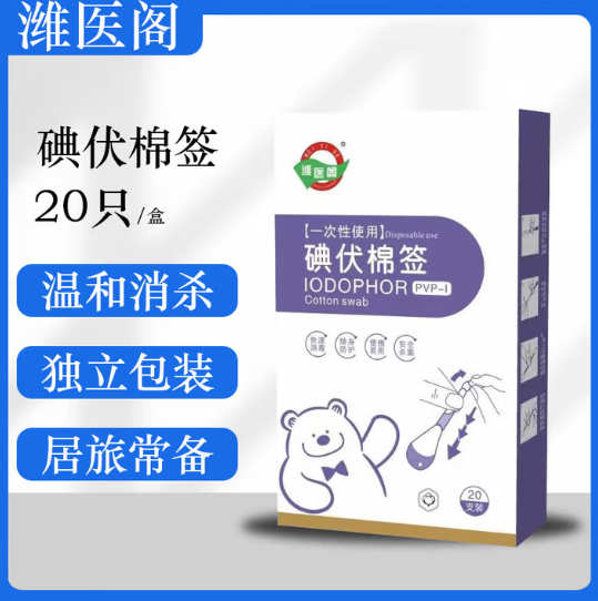濰醫閣一次性碘伏棉簽新生嬰兒肚臍臨床輸液前皮膚消毒碘伏棉棒大號
