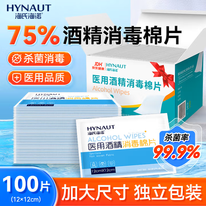 海氏海諾 海氏海諾 醫用酒精棉片消毒棉片大號75%酒精消毒濕巾單片獨立包裝