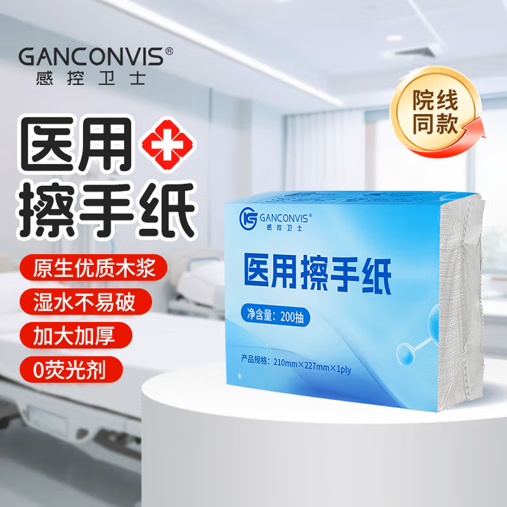 GANCONVIS醫用擦手紙干手紙吸水紙不掉屑高溫處理OK鏡手術用藥店家用干手巾 加大加厚200抽*1包