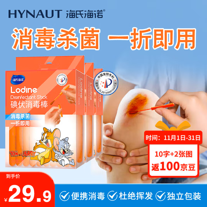 海氏海諾 海氏海諾醫用碘伏碘酒消毒液棉簽棒碘伏棉簽嬰兒碘酊獨立裝棉球