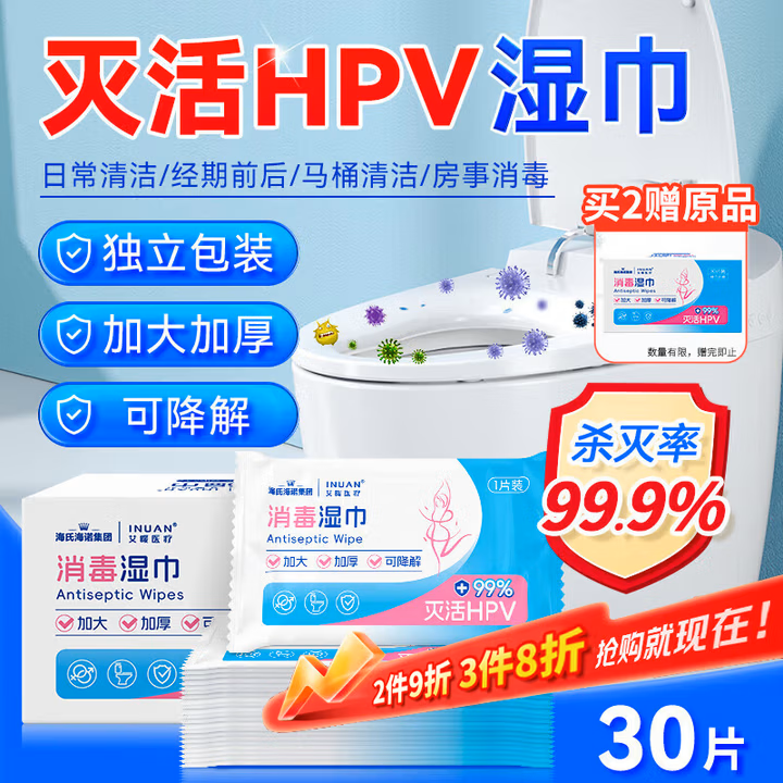 海氏海諾 海氏海諾hpv消毒濕巾一次性無酒精廁所清潔殺菌濕紙巾獨立裝